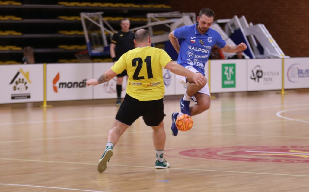 Tydzień temu Galport ograł aktualnego mistrza FC Świecie, a teraz poprzedniego. Beniaminek był faworytem tego spotkania i w pierwszych 10 minutach potwierdził to czterema golami. Gdyby nie Brajan Olkiewicz dorobek mógł być okazalszy. Wynik otworzył w 2. min. precyzyjnym uderzeniem z ok. 17 metrów Kacper Tarkowski. Trzy minuty potem Jakub Bollin trafił w słupek, a następnie w nogi obrońcy. Do piłki jednak dopadł Kacper Piór i skierował ją do siatki. Autorem dwóch następnych goli w 9. min. był Maciej Śliwiński. W ekipie Gresty w 1. części jedynym zagrożeniem był Mikołaj Topór. Pierwszy jego strzał zaraz na początku meczu złapał Fabian Hiller. W 12. min. Topór wyszedł z połowy boiska na sytuację sam na sam z bramkarzem i jej nie zmarnował. W 17. min. Mikołaj Topór strzałem z boku boiska ponownie zaskoczył Hillera i zrobiło się tylko 4:2. Jednak nadzieję na kontakt rozwiał Greście w 19. min. bardzo aktywny w tym meczu Maciej Śliwiński. Później „Śliwa” obił poprzeczkę bramki rywali, a umiejętności Fabiana Hillera sprawdził Norbert Frankiewicz. W końcowych trzech minutach piłkarze Galportu udokumentowali swoją wyższość jeszcze trzema bramkami. Najpierw w 27. min. po akcji Macieja Śliwińskiego i Damiana Stasikowskiego do własnej bramki piłkę skierował Dominik Zieliński, ale gol zapisano na konto „Stasika”. Za chwilę Stasikowski podwyższył na 7:2, a wynik końcowy ustalił z rzutu karnego przedłużonego Kacper Tarkowski. Dodajmy, że piłkarze Galportu w meczu oddali 35 strzałów, a Gresty tylko 10.
