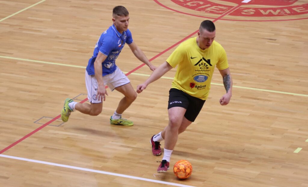 Haber Team w sobotę wygrał mecz w centralnym Pucharze Polski z drugoligowcem z Kościana, a dzień później otrzymał prawdziwą lekcję futsalu od multimedalisty świeckiej halówki. Mimo iż skład miał jeszcze mocniejszy, bo doszli Guladi Kokoladze i Dominik Fijałkowski. W naszej lidze zadebiutował reprezentant Polski socca Bartłomiej Piórkowski, ale przy świetnie dysponowanych wczoraj piłkarzach Raf-Mix’a wiele sobie nie pograł. Po dwóch remisach wicemistrz zagrał znakomity mecz zarówno w defensywie, jak i w ataku. W odpowiednich momentach niczym bokser w ringu zadawał przeciwnikowi kolejne ciosy. Marcin Wanat i jego koledzy oddali w meczu zaledwie 15 strzałów, z których tylko cztery były niecelne. Najpierw w 4. i 6. min. dwukrotnie Habra zaskoczył duet Maciej Sieradzki – Damian Tokarski. Ten drugi podawał, a „Siara” strzelał. W 7. min. na 3:0 podwyższył Marcin Wanat, a wynik do przerwy trzy minuty później ustalił po solowej akcji Dawid Kawka. Podopieczni Jerzego Siemienieckiego mieli problemy z przedostaniem się przez szczelną defensywę rywali. Ich próby były często blokowane, a jeśli już udało się oddać celny strzał to na posterunku był Karol Drażdżewski. Najlepszą okazję miał przy 0:1 Guladi Kokoladze, ale „Feli” był w niej górą.