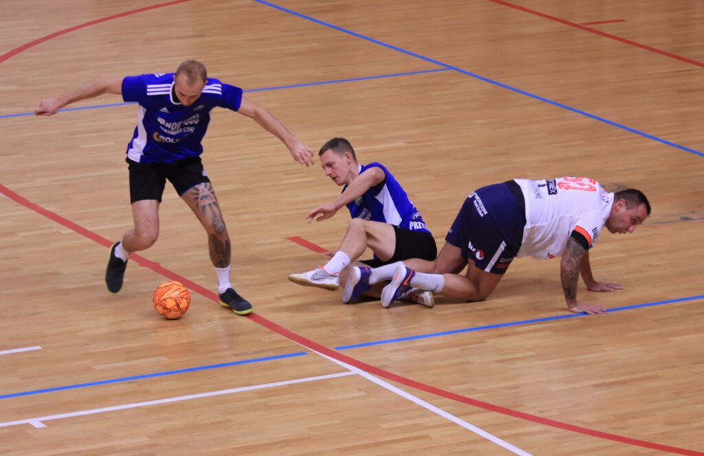 Multimedalista z dużymi zmianami w składzie kontra debiutant w elicie, a przy okazji rewanż za ostatni półfinał, w którym Raf-Mix wygrał 6:4. Przysierszczanie wzmocnieni czterema zawodnikami przeciwstawili się wicemistrzowi, a ich receptą na zaskoczenie przeciwnika były szybkie kontry. Wydarzeniem sobotniego wieczoru był powrót do naszej ligi trenera Futsalu Świecie Marcina Mikołajewicza, który niegdyś sięgał po mistrzostwo i laury indywidualne z Euro-Drobiem Toruń. To właśnie „Miki” otworzył wynik w 8. min. po podaniu Marcina Wanata. Noe-Trans odpowiedział 90 sekund później za sprawą trafienia Patryka Kotali. Jednak po VAR-ze gol został anulowany, bo Kotala przy przejęciu piłki na środku boiska sfaulował Kacpra Bańkę. W 13. min. wątpliwości nie było, a historyczną bramkę dla zespołu Dariusza Gerke w Extralidze strzelił debiutant w jego barwach Przemysław Nowaczek (asysta Martin Gerke). Druga połowa zaczęła się źle dla Noe-Trans, bo za faul na Mikołajewiczu czerwoną kartkę zobaczył ważny jego filar Dawid Szpankiewicz. Raf-Mix wykorzystał grę w przewadze w 18. min., a gola zdobył Wanat. Beniaminek na odpowiedź potrzebował tylko sześć sekund, a do remisu doprowadził Amadeusz Olszewski. W 24. min. pięciokrotny mistrz naszej ligi powinien znów prowadzić, lecz Marcin Wanat nie wykorzystał rzutu karnego. Jego strzał obronił Marek Bernacki. 120 sekund potem zapachniało niespodzianką, bo „Amek” ponownie zaskoczył debiutującego w bramce Raf-Mix’a Karola Drażdżewskiego, a asystował mu Patryk Kotala. Piłkarze Noe-Trans skutecznie bronili prowadzenia przez 100 sekund mając na koncie 5 fauli. W 29. min. po kontrze do remisu doprowadził wracający do rozgrywek w Świeciu po trzech latach Damian Tokarski. 15 sekund potem sztab szkoleniowy Futsalu Świecie wyprowadził Raf-Mix na prowadzenie 4:3, ale tym razem do siatki trafił Wanat. Jednak beniaminek zdołał uratować punkt. Na 11 sekund przed końcem do siatki trafił Patryk Kotala. Remis chyba był wynikiem sprawiedliwym.